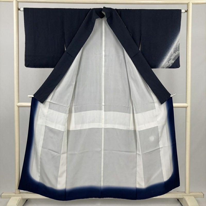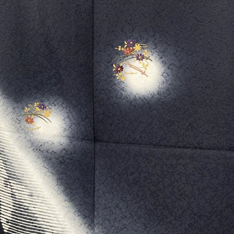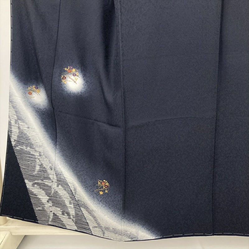 (中古) 訪問着 紺 セミフォーマル ほたるぼかし 吹き寄せ 袷 絹【身丈】152cm【裄丈】63.5cm