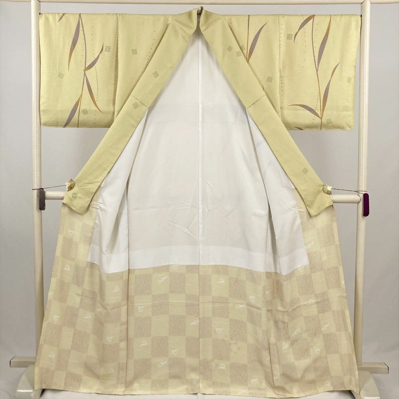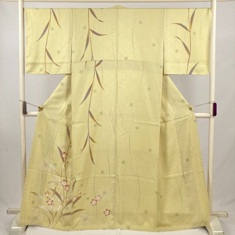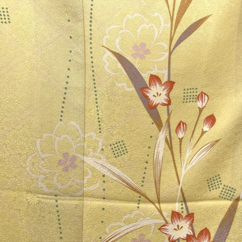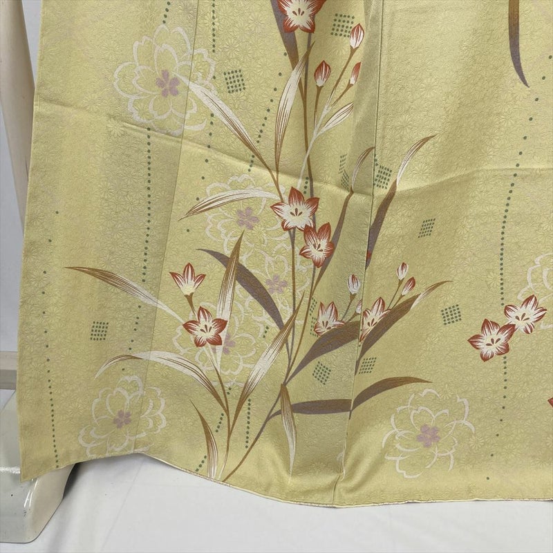 (中古) 訪問着 薄黄 訪問着 花文様 袷 絹 【身丈】161cm【裄丈】68cm