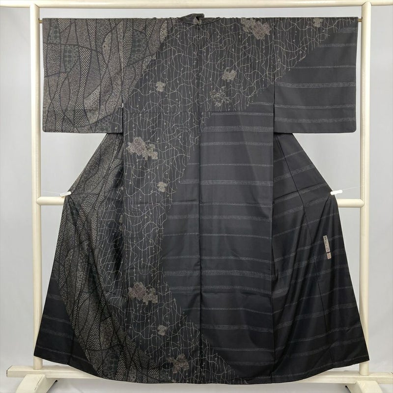 (中古) 訪問着 黒 カジュアル 抽象柄 袷 絹 【身丈】150.5cm【裄丈】67cm