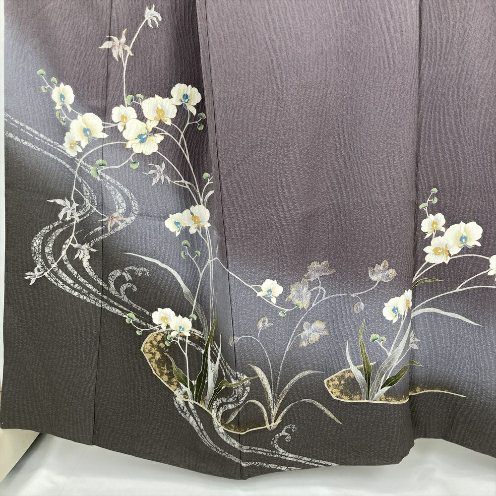 【色柄】灰紫 セミフォーマル 地紋織り ぼかし染め 刺繍 蘭
