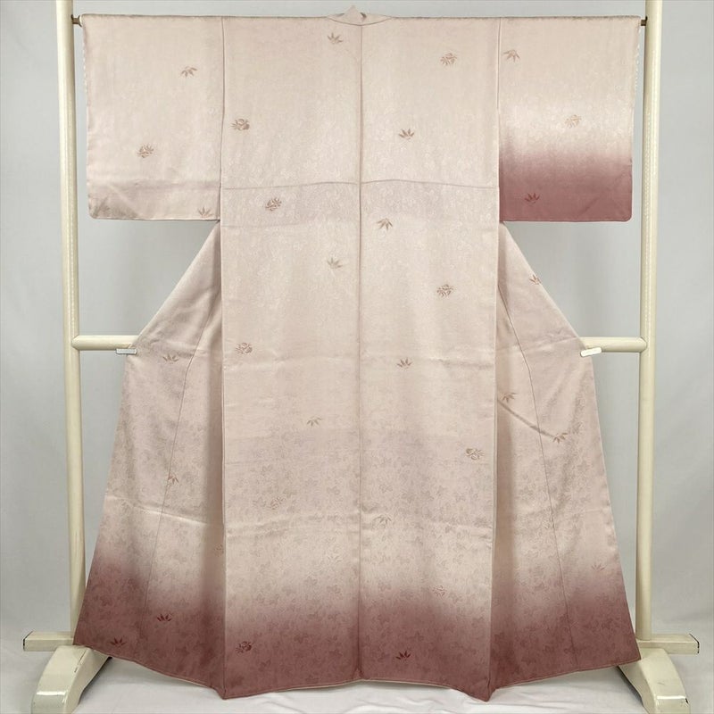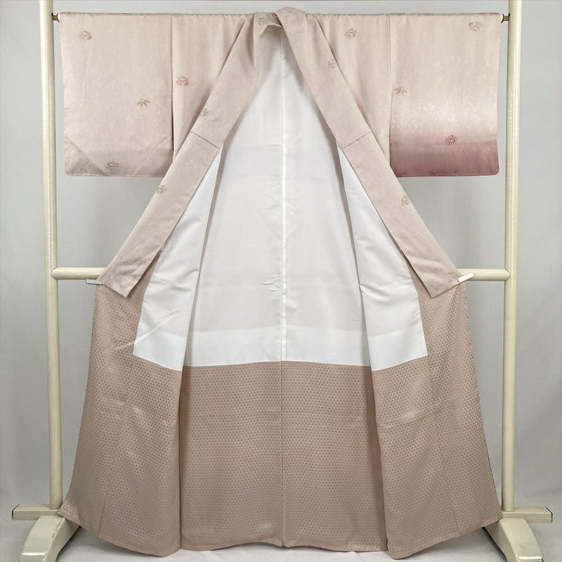 (中古) 訪問着 ピンクベージュ セミフォーマル 輪奈織 地紋織 ぼかし染め 袷 絹【身丈】156cm【裄丈】66.5cm