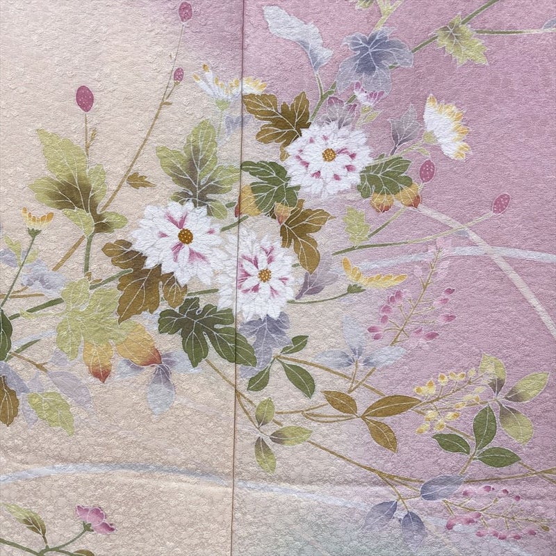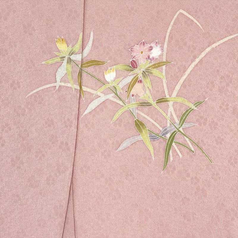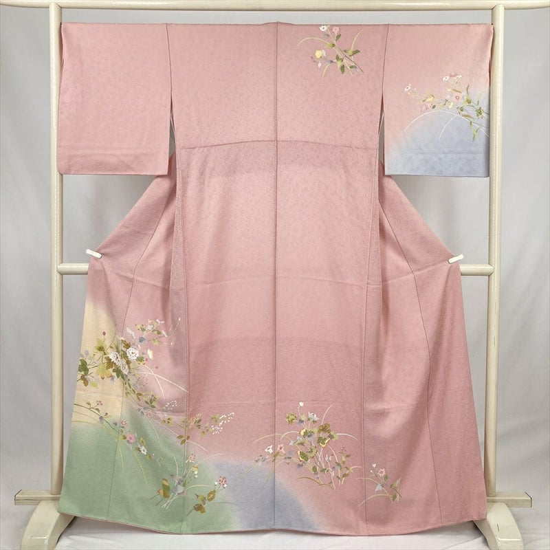 (中古) 訪問着 ピンク セミフォーマル 四季花 袷 絹【身丈】160cm【裄丈】71cm