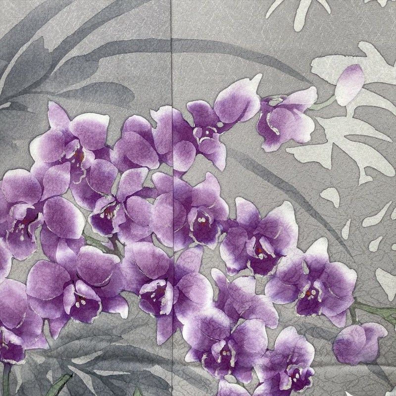 【色柄】薄灰 グレー セミフォーマル 蘭 蝶