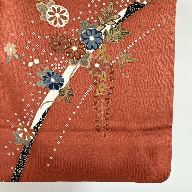 【色柄】薄赤茶 臙脂 セミフォーマル 春秋花文