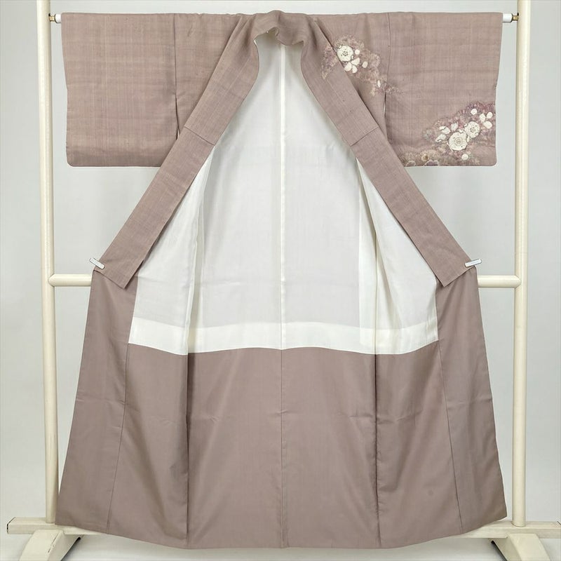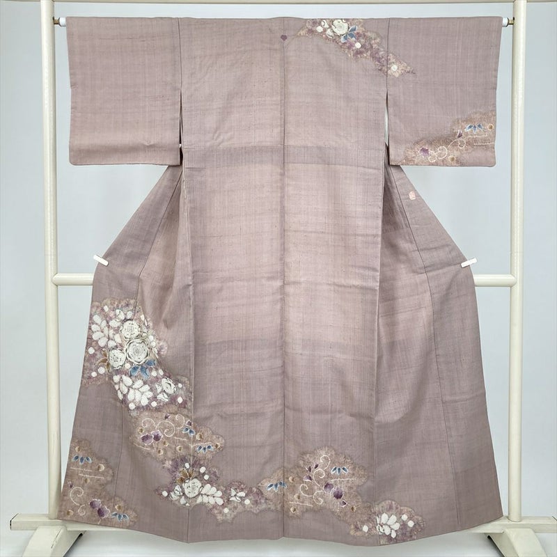 (中古) 訪問着 灰梅 くすみピンク カジュアル 辻が花 袷 絹 【身丈】155cm【裄丈】64cm