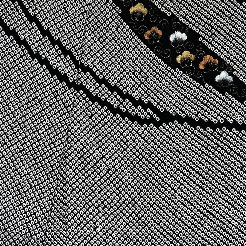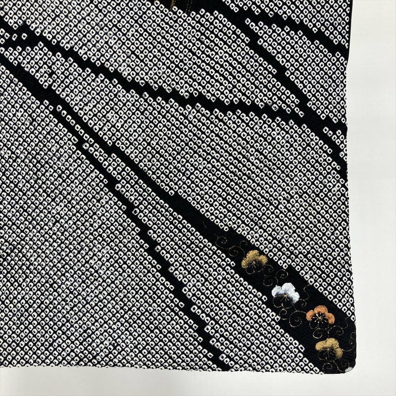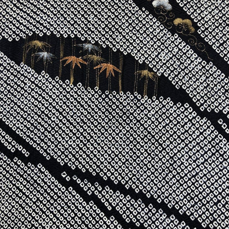 【色柄】黒 白 セミフォーマル 鹿の子絞り 梅 笹