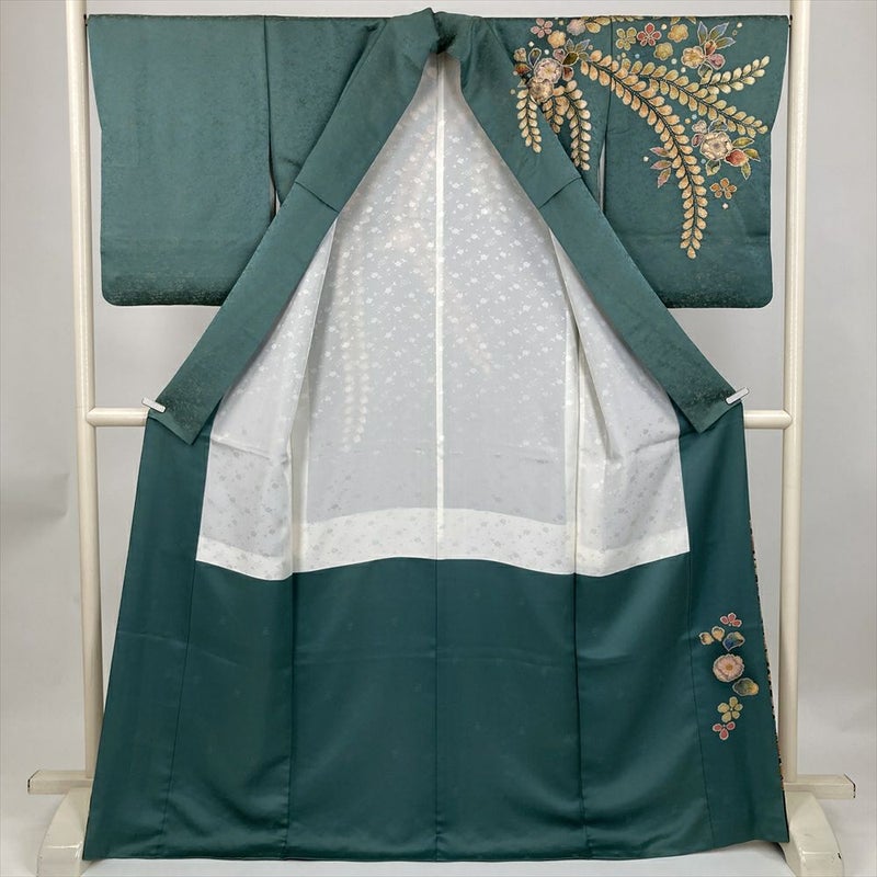 (中古) 訪問着 緑 セミフォーマル 辻が花 袷 絹 【身丈】163cm【裄丈】67cm