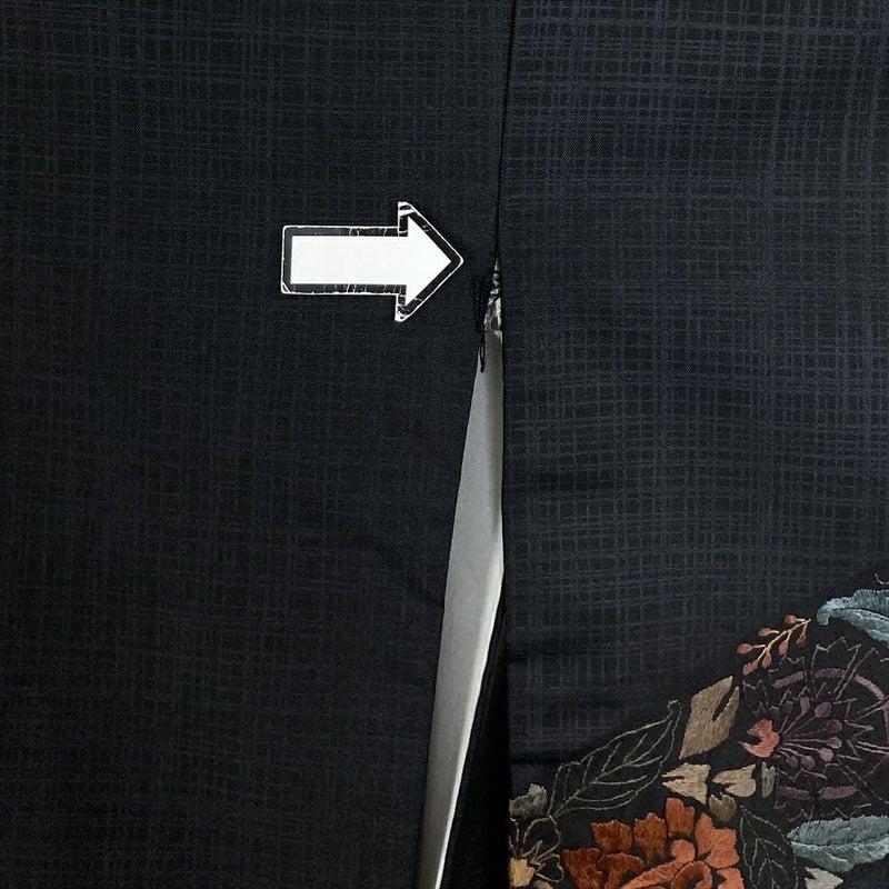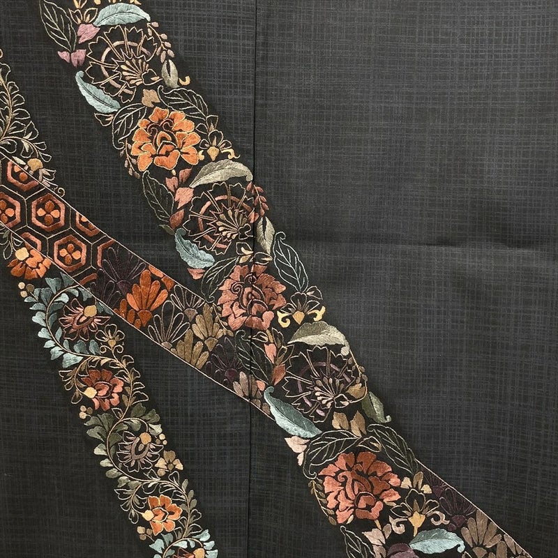 【色柄】黒 セミフォーマル 紬地 刺繍 天平 花草文