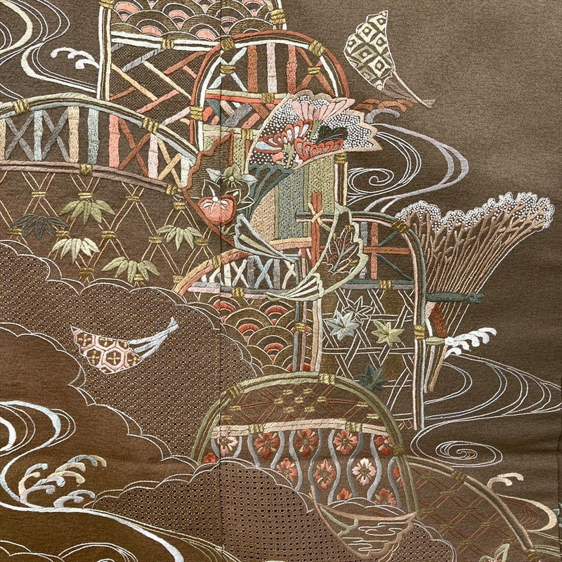 庭園の情景を思わせる玉袖垣の意匠には、細やかな刺繍が施され、静かな中にも確かな手仕事の温もりが宿っています。