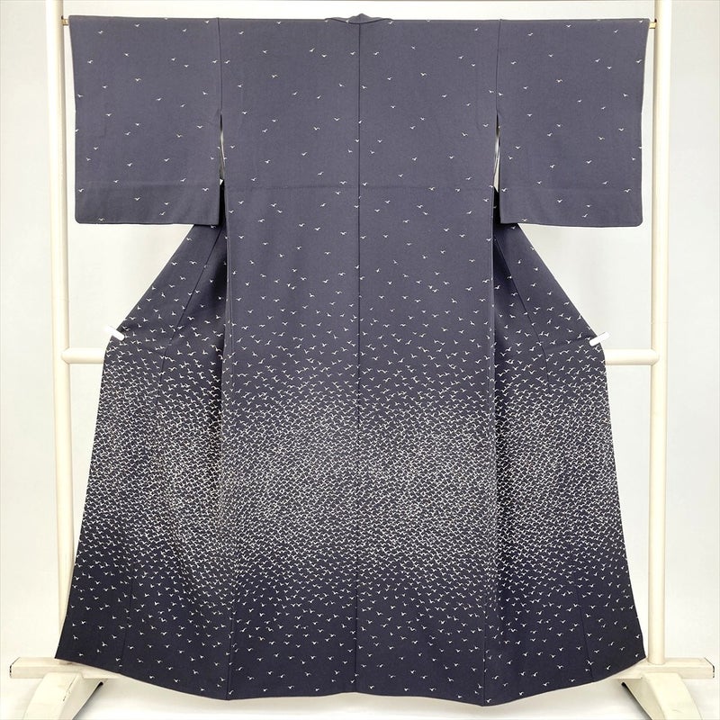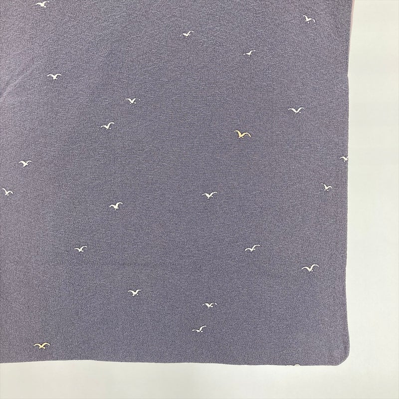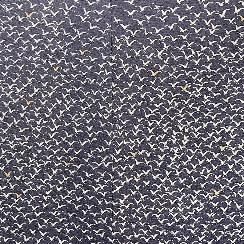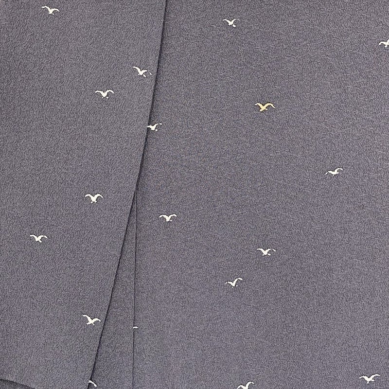 生地特有のシボ(表面の細かな凹凸)が、染め色の深みを際立たせ、お召しになった際には歩くたびに鳥たちが羽ばたくような、生き生きとした動きを演出します。
