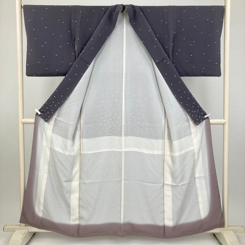 (中古) 訪問着 灰紫 セミフォーマル 鳥 袷 絹 【身丈】153cm【裄丈】66cm