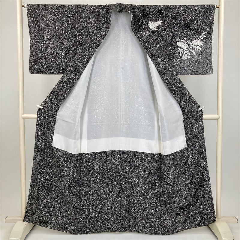 (中古) 訪問着 黒 白 セミフォーマル 菊 袷 絹 【身丈】158cm【裄丈】65cm