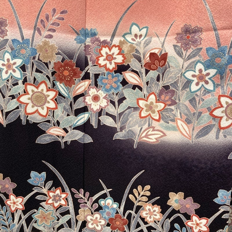 【色柄】墨黒 セミフォーマル 花草文