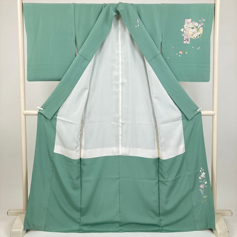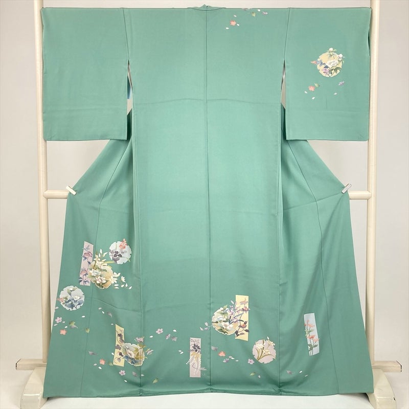 (中古) 訪問着 緑 セミフォーマル 短冊文 雪輪文 袷 絹 【身丈】164cm【裄丈】71cm
