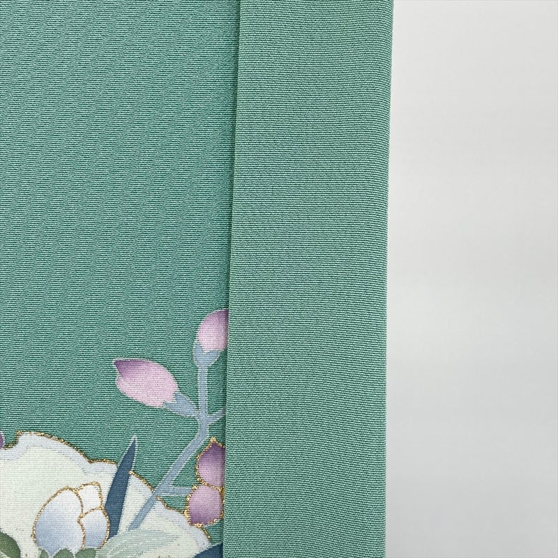 しっとりと肌に吸い付くような縮緬(ちりめん)地に、心落ち着く青磁色が美しく映えます。