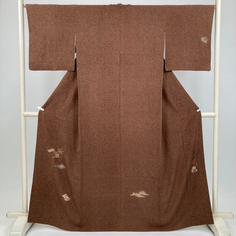 (中古) 訪問着 茶 セミフォーマル 若松 硯 源氏香 袷 絹 【身丈】159cm【裄丈】66cm
