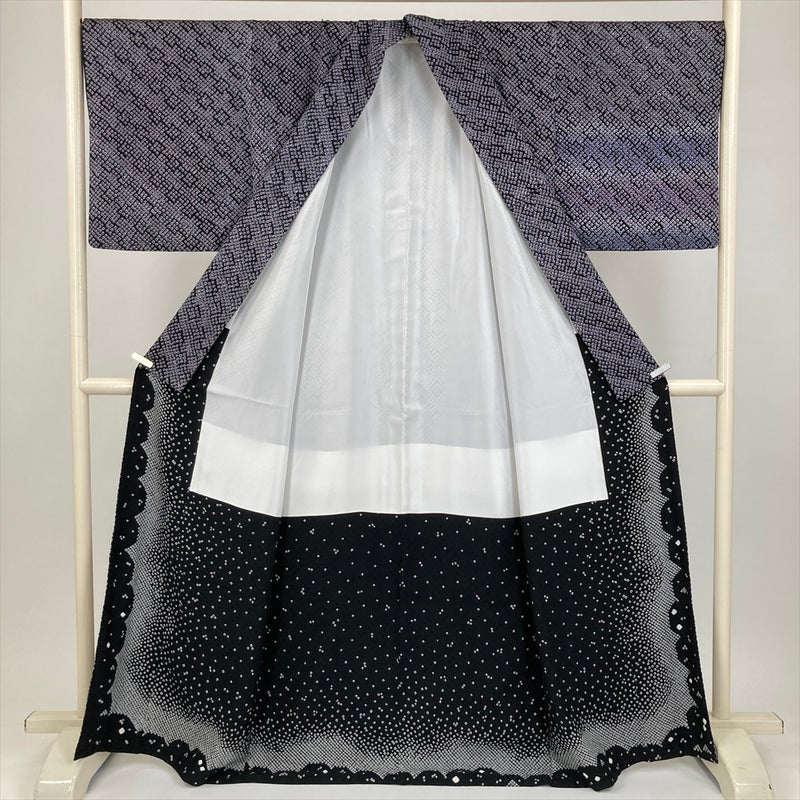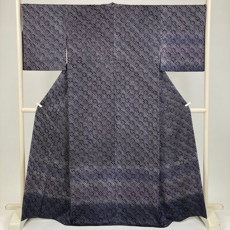 (中古) 訪問着 濃紺 セミフォーマル カジュアル 総絞り ぼかし 袷 絹 【身丈】161.5cm【裄丈】72cm