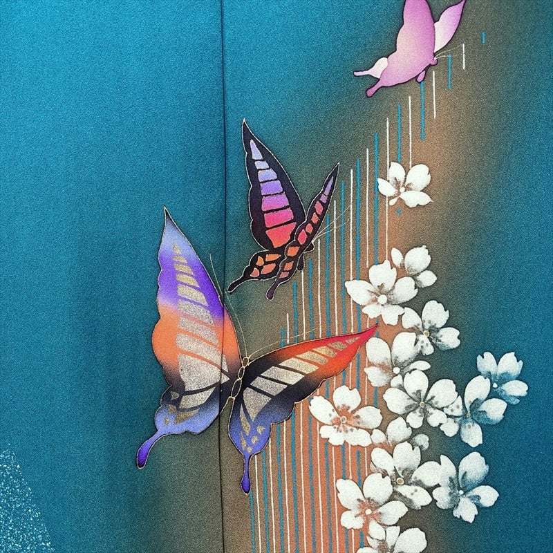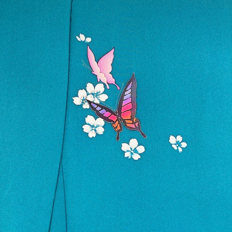 【色柄】青緑 孔雀色 セミフォーマル 蝶 桜