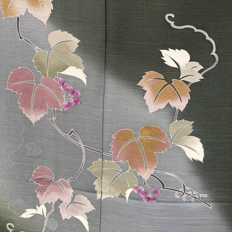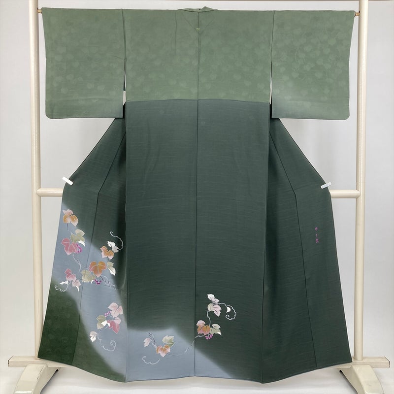 【色柄】灰緑 セミフォーマル 葡萄 ぼかし 地紋織り