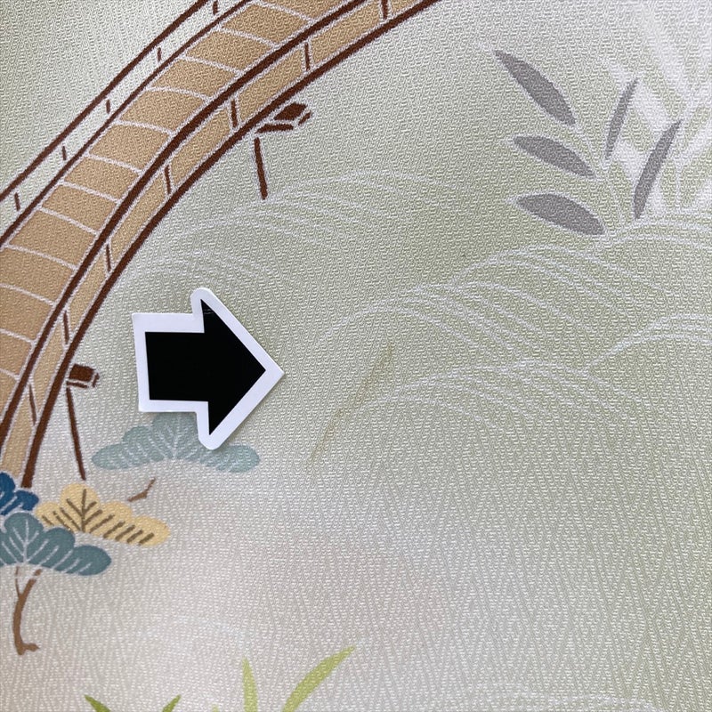 (中古) 訪問着 薄黄緑 フォーマル 家 菊 松 千總 金駒刺繡 袷 絹【身丈】155cm【裄丈】67cm
