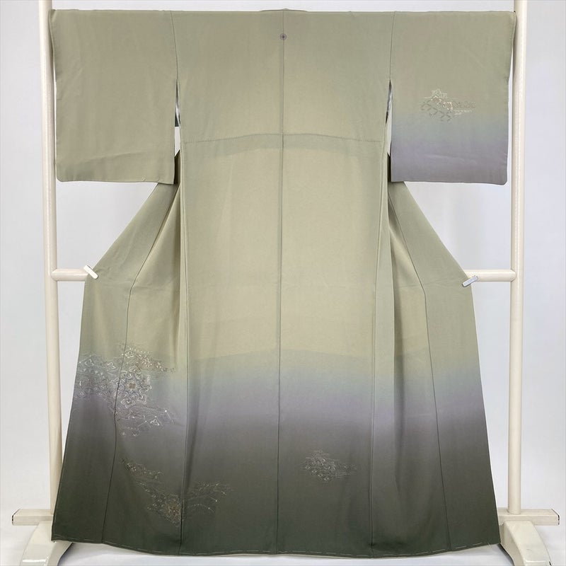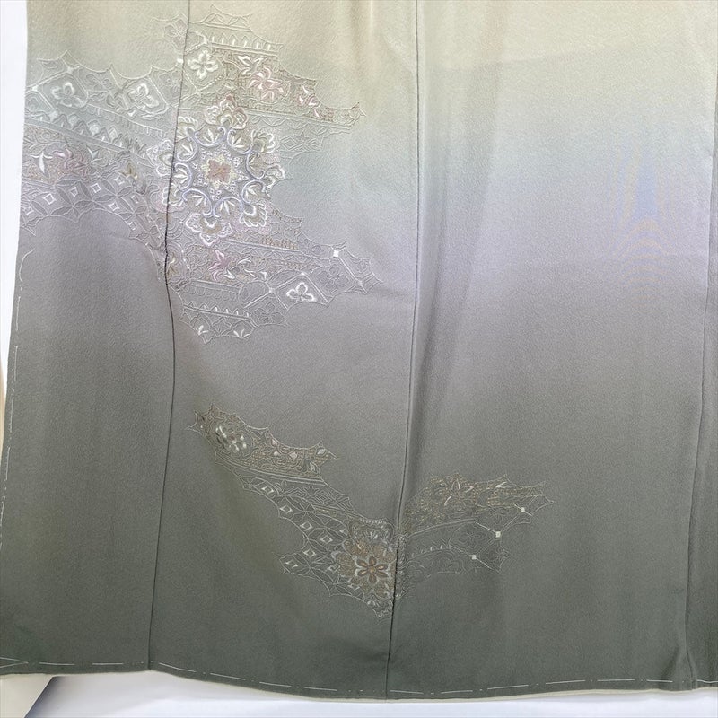 (中古) 訪問着 薄柳 セミフォーマル 華紋 七宝 華菱 刺繍 袷 絹 【身丈】161cm【裄丈】67.5cm