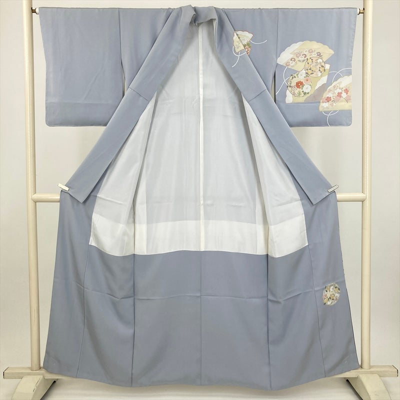 (中古) 訪問着 薄灰青 水色 フォーマル 扇文 花丸紋 ぼかし 袷 絹 【身丈】154.5cm【裄丈】64.5cm