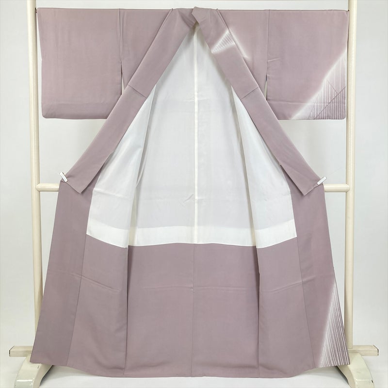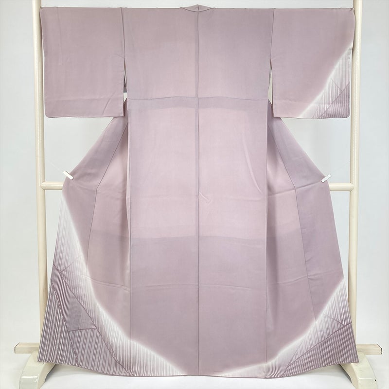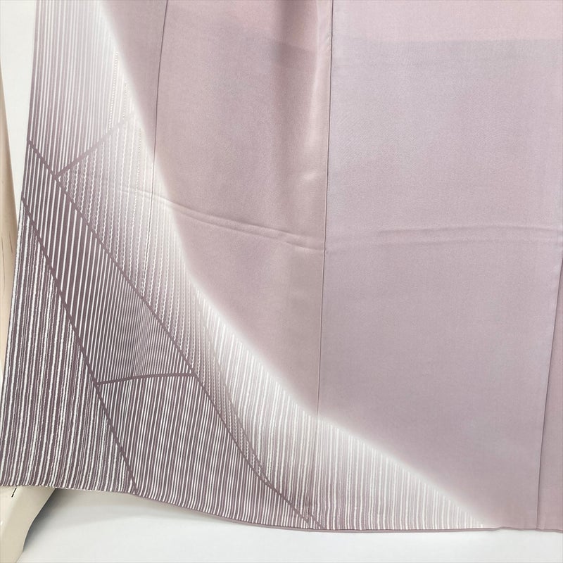 (中古) 訪問着 灰紫 セミフォーマル 幾何学模様 袷 絹【身丈】159cm【裄丈】69cm