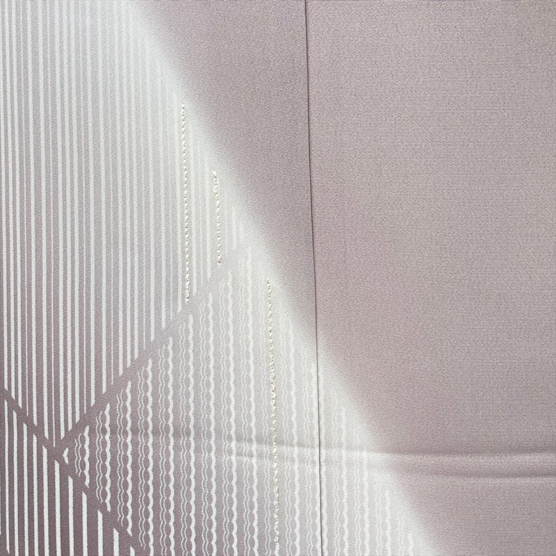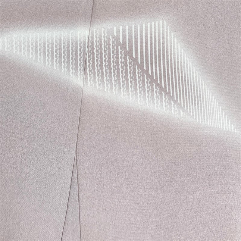 落ち着きと品格を兼ね備えた「灰紫」の地色に、シャープな幾何学模様が映えるモダンな訪問着です。