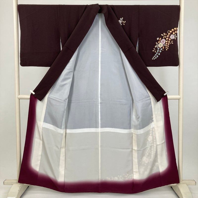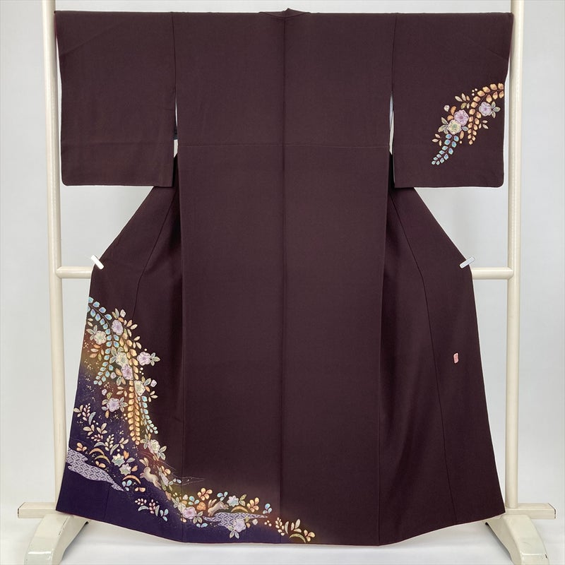 (中古) 訪問着 こげ茶 フォーマル 翠山 辻が花 袷 絹【身丈】157cm【裄丈】67cm