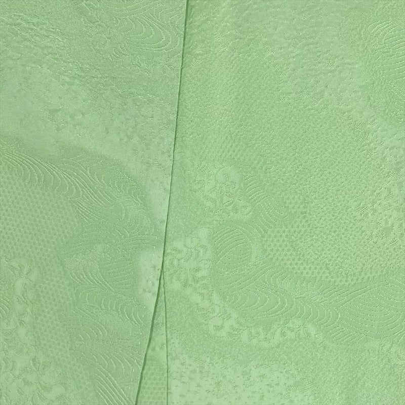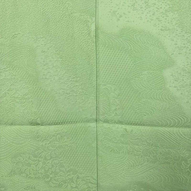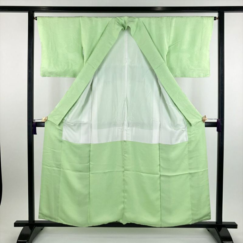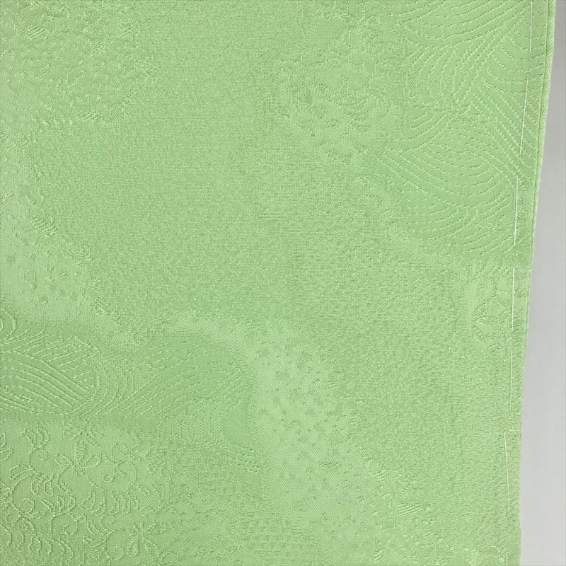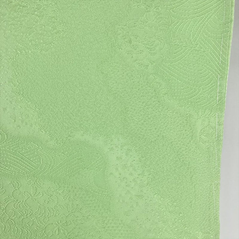 (中古)色無地 黄緑 セミフォーマル 地紋織り 袷 S【身丈】155cm【裄丈】65.5cm