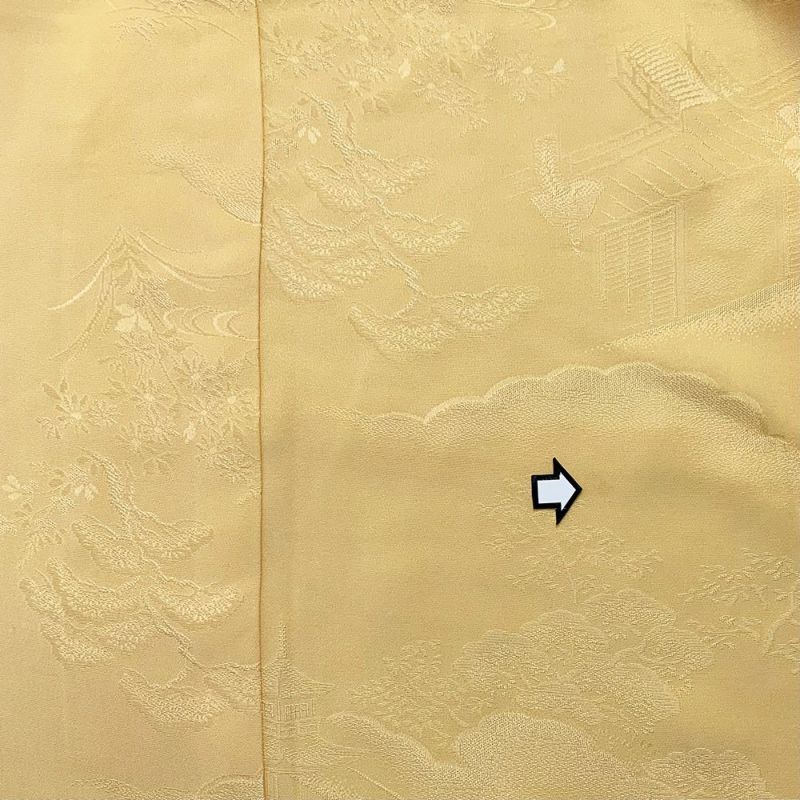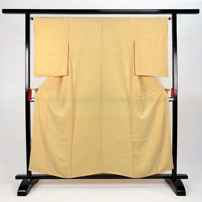 (中古)色無地 黄色 セミフォーマル 地紋織り 袷【身丈】151.5cm【裄丈】65.5cm
