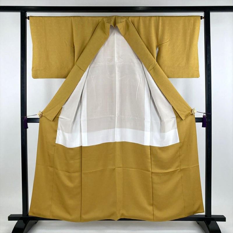(中古) 色無地 黄色 セミフォーマル カジュアル 地紋織り 染め 袷 【身丈】154cm【裄丈】65.5cm
