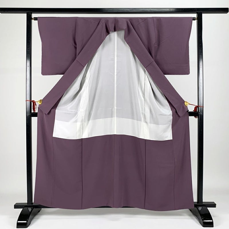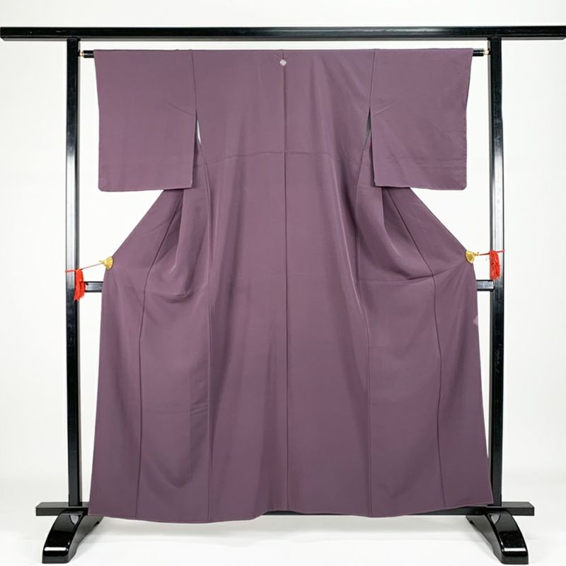 (中古)色無地 紫 ちりめん 一つ紋 共八掛 S【身丈】155.5cm【裄丈】63.5cm