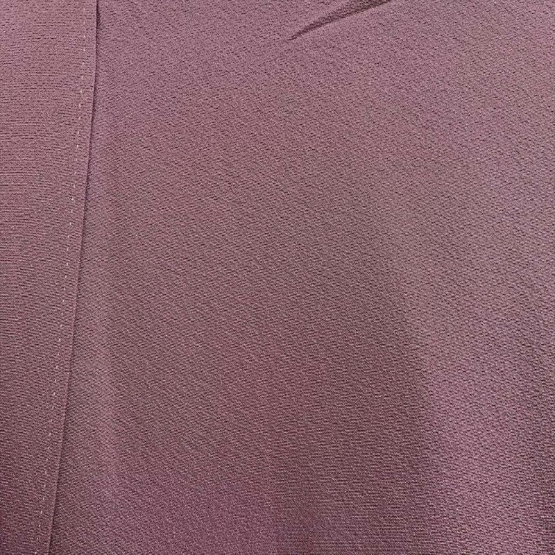 薄紫のちりめんでシンプルな色無地です。一つ紋。しつけあり。鑑賞会やお出かけなどセミフォーマルのお席にお召いただけます。