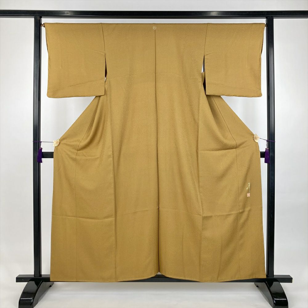 (中古)色無地 芥子 セミフォーマル カジュアル 地紋織り一つ紋 鮫 袷 SS【身丈】153.5cm【裄丈】66cm