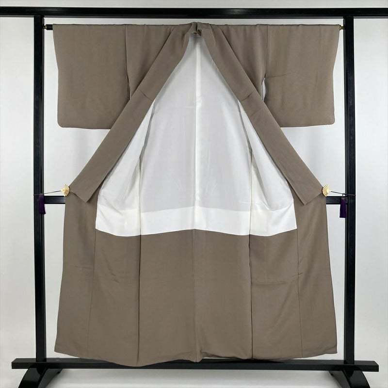 (中古) 色無地 茶鼠色 薄茶色 カジュアル ちりめん 染め 袷 【身丈】149.5cm【裄丈】65.5cm
