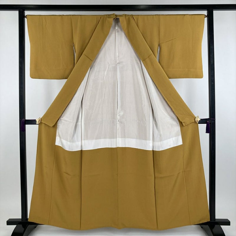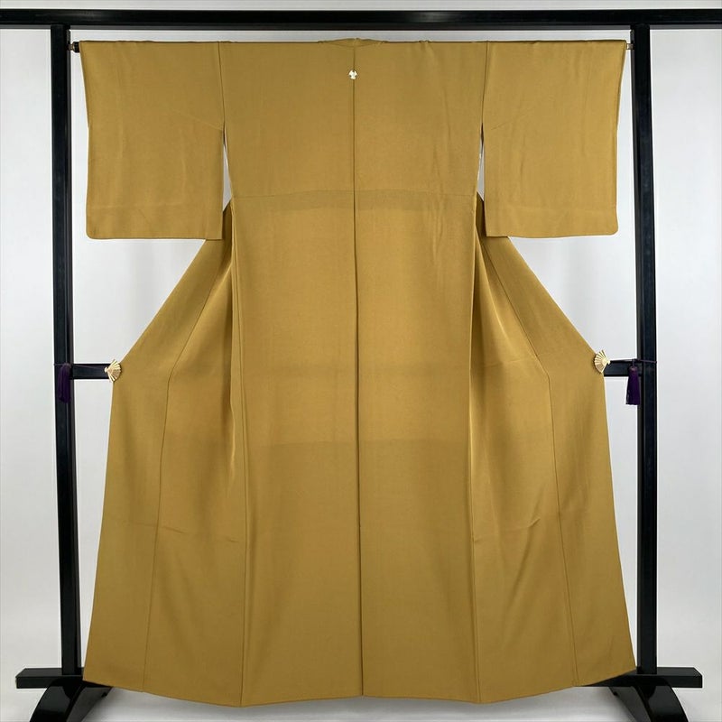 (中古) 色無地 黄色 セミフォーマル カジュアル ちりめん 染め 袷 【身丈】156cm【裄丈】66.5cm