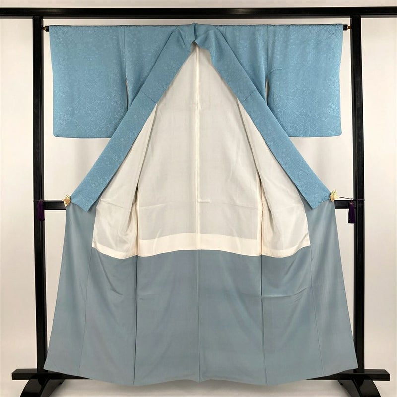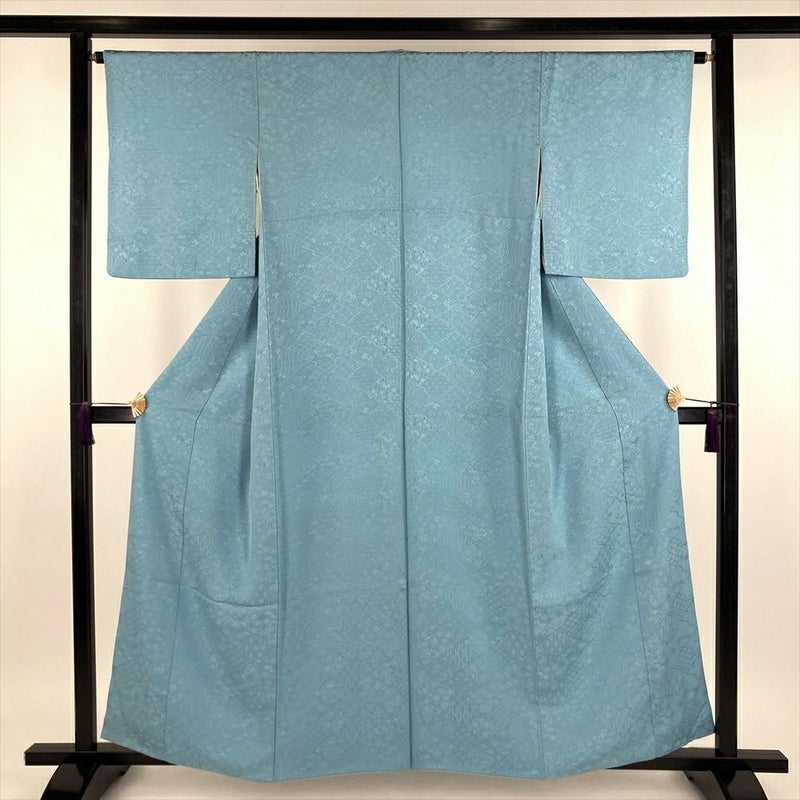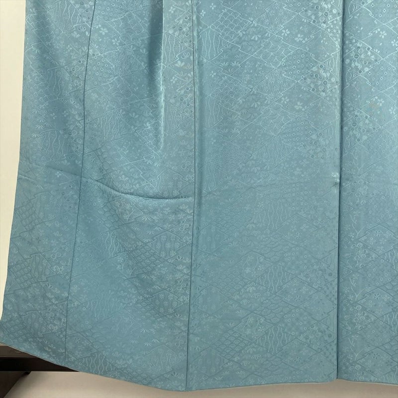 (中古) 色無地 水色 カジュアル 地紋織り 染め 袷 【身丈】154cm【裄丈】65cm
