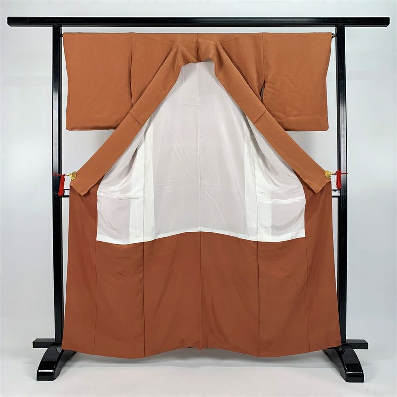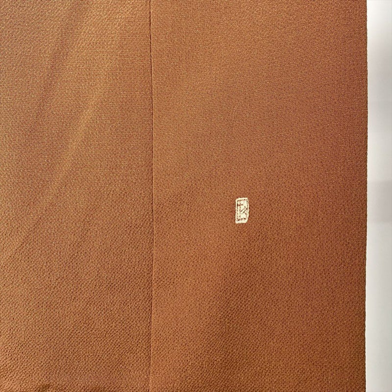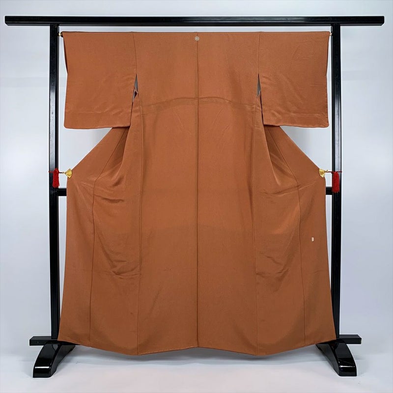 (中古)色無地 茶 セミフォーマル 縮緬 一つ紋 袷【身丈】159.5cm【裄丈】67.5cm