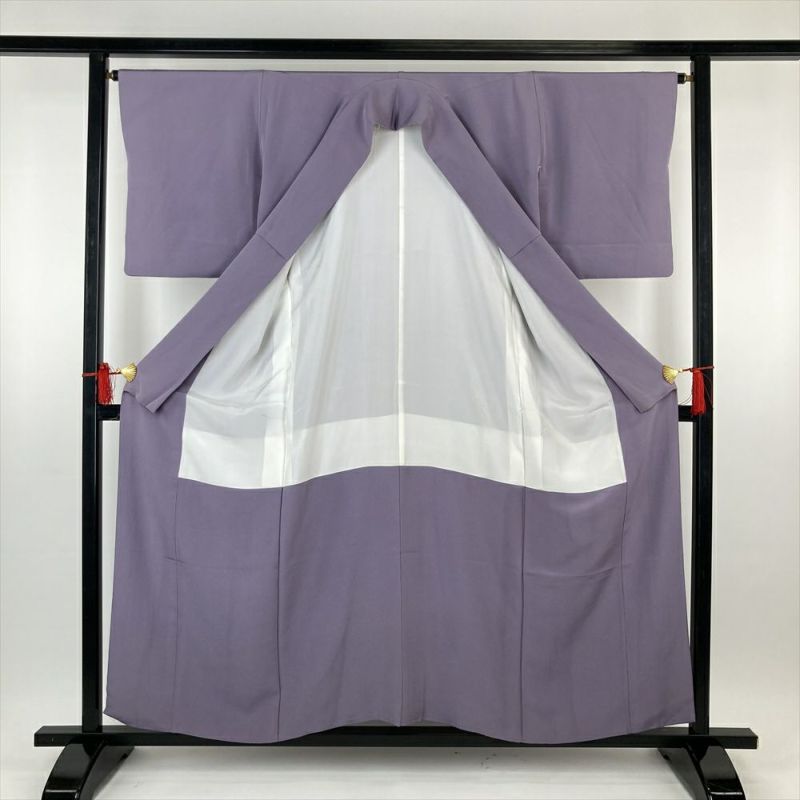 (中古)色無地 紫 セミフォーマル カジュアル 一つ紋 ちりめん 無地 袷 SS【身丈】153cm 【裄丈】65cm