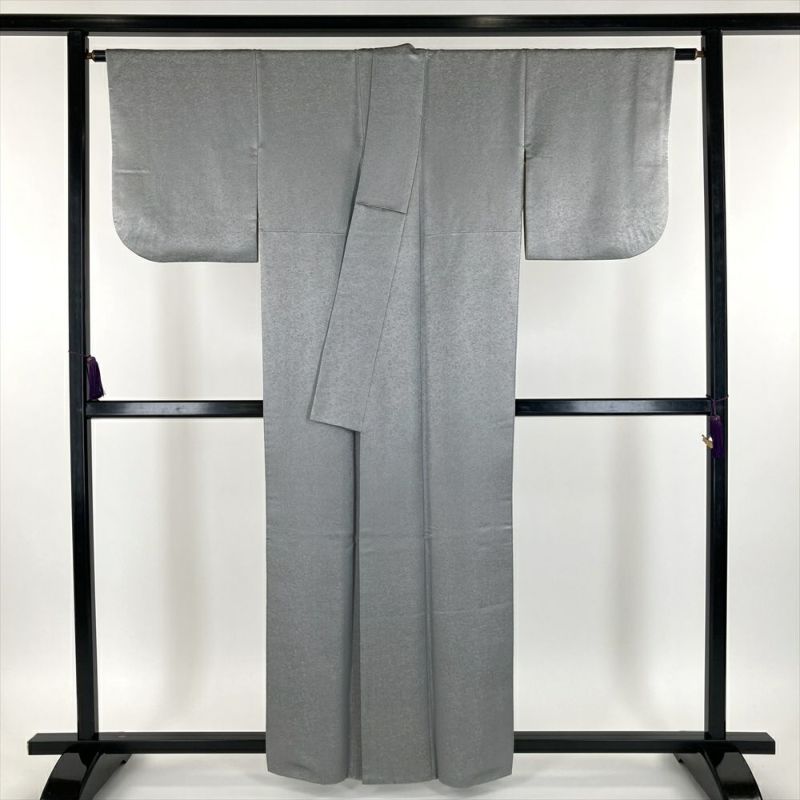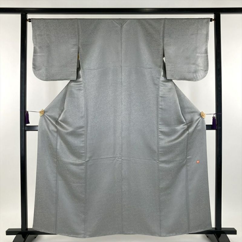 (中古) 久保田一竹 色無地 銀鼠色 シルバーグレー色 セミフォーマル カジュアル 金通し 染め 一竹辻が花 一竹工房 袷 S【身丈】155cm【裄丈】65cm