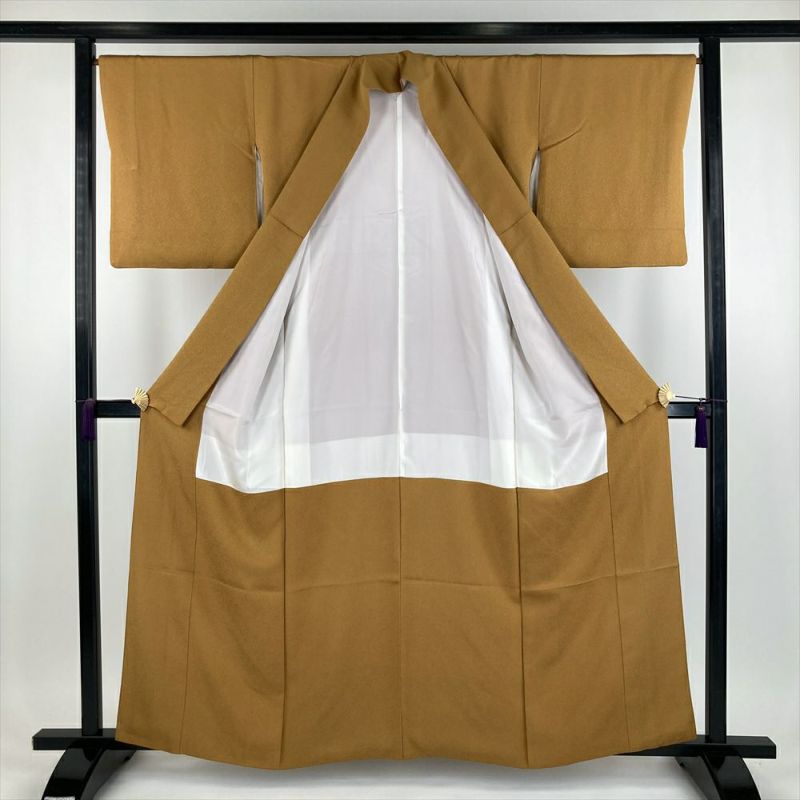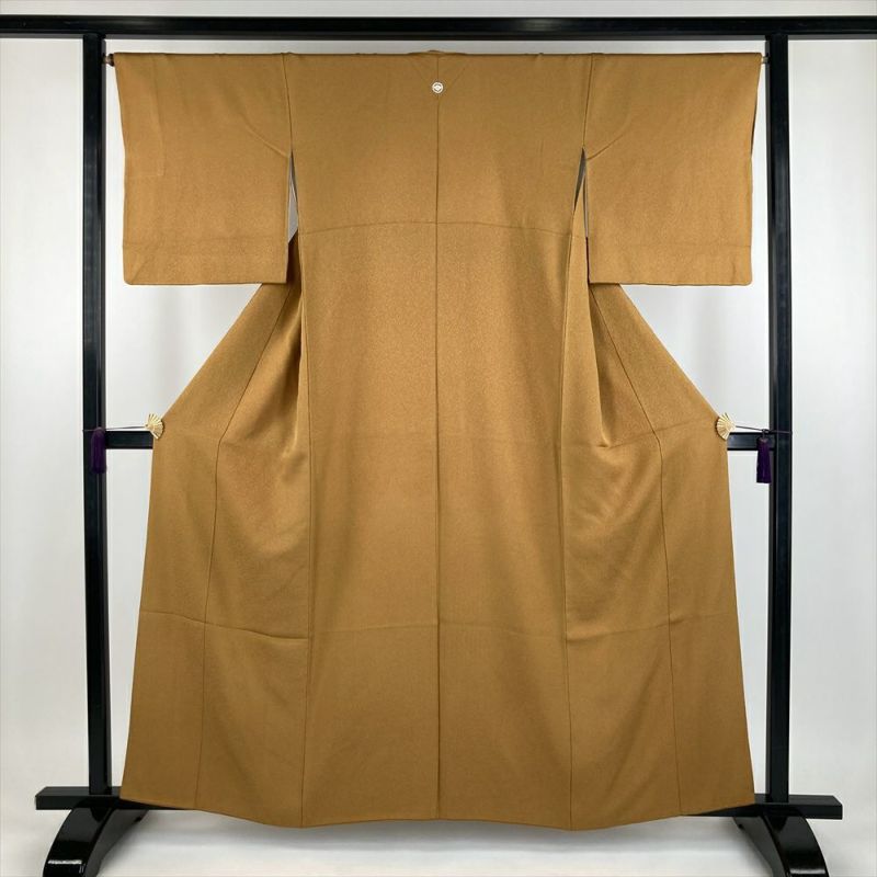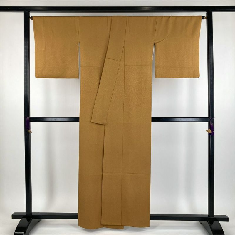 (中古) 色無地 金茶色 セミフォーマル 地紋織り 袷【身丈】155.5cm【裄丈】67cm