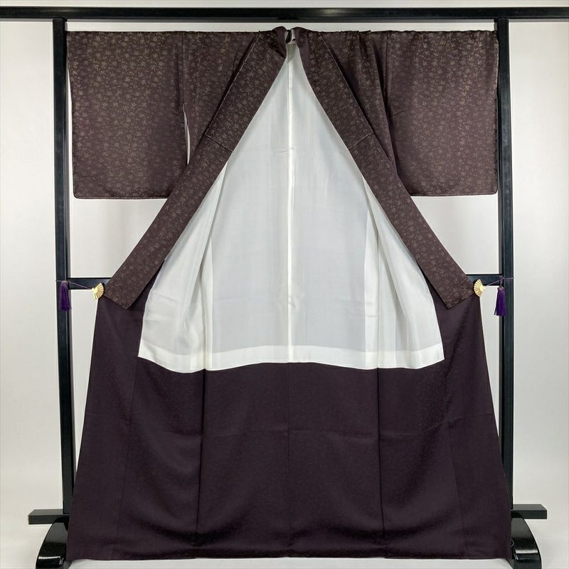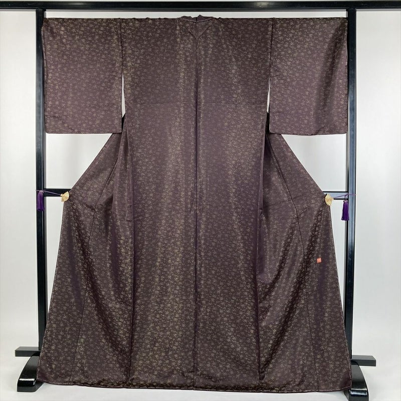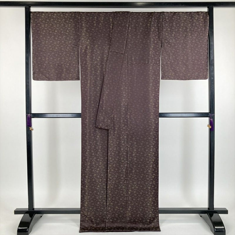 (中古)久保田一竹 色無地 焦げ茶色 セミフォーマル カジュアル 一竹工房 金通し 笹 袷【身丈】166cm【裄丈】71.5cm