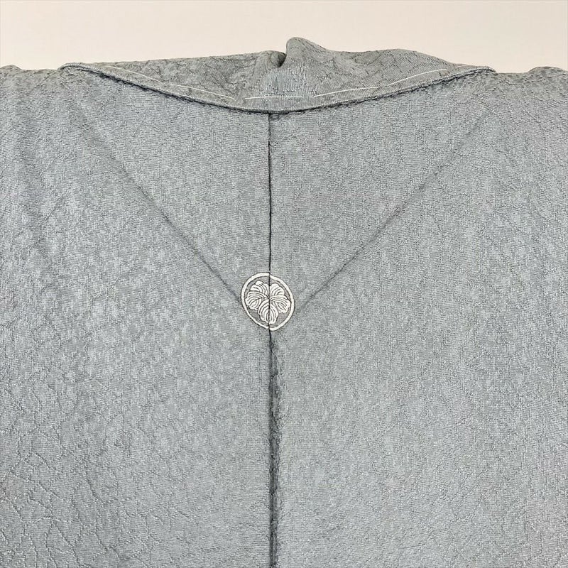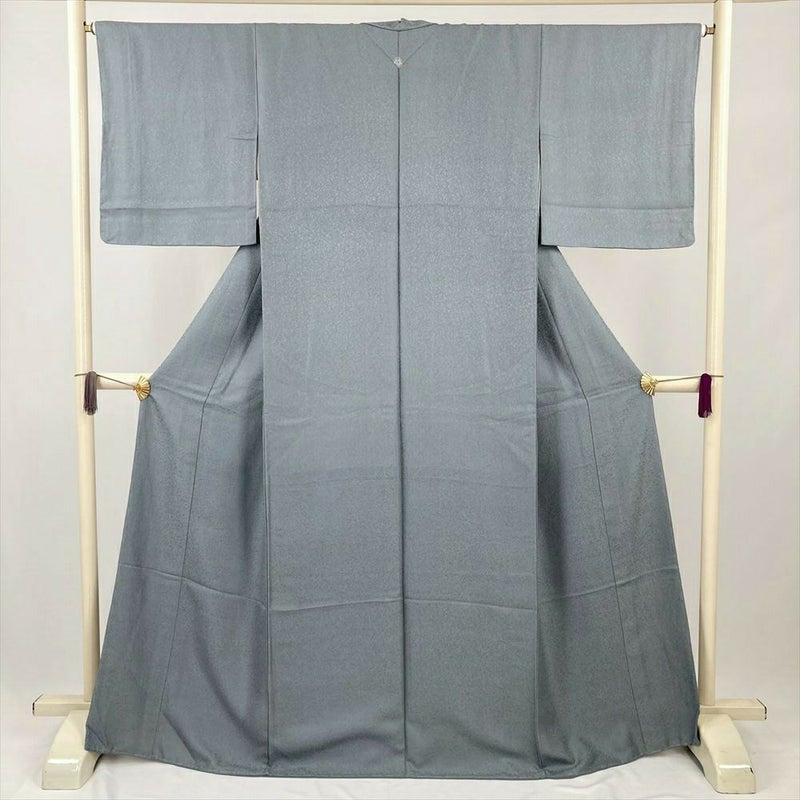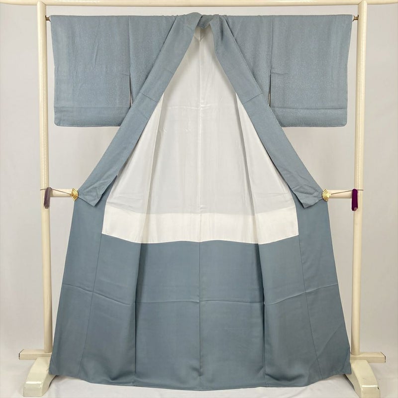 (中古) 色無地 灰青 グレー セミフォーマル 地紋織 袷 絹【身丈】160.5cm【裄丈】65.5cm
