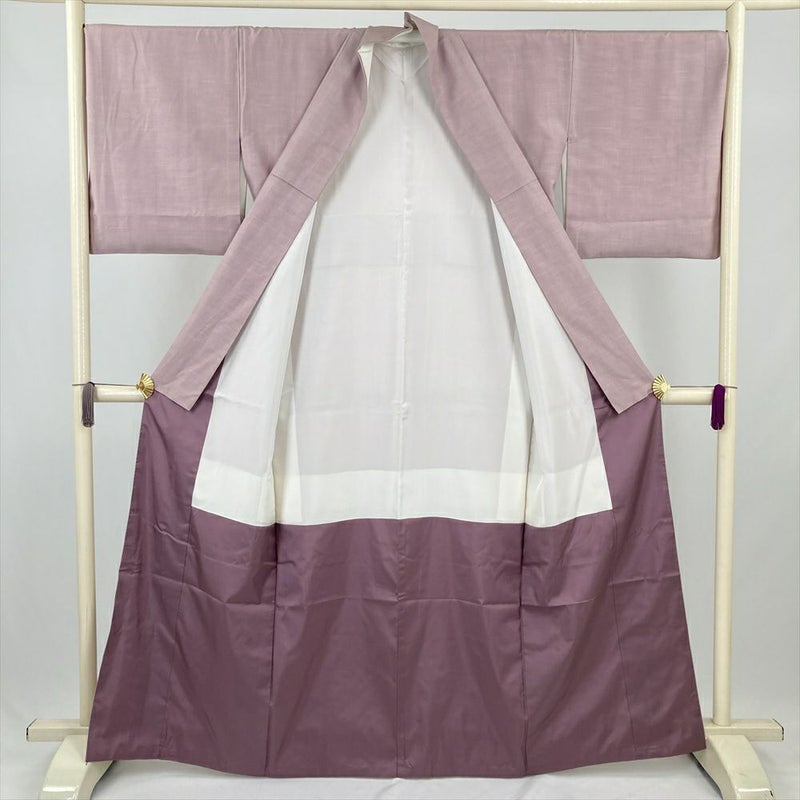 (中古) 色無地 桜色 ピンクグレー カジュアル 紬地 無地 袷 絹 【身丈】158.5cm【裄丈】71cm