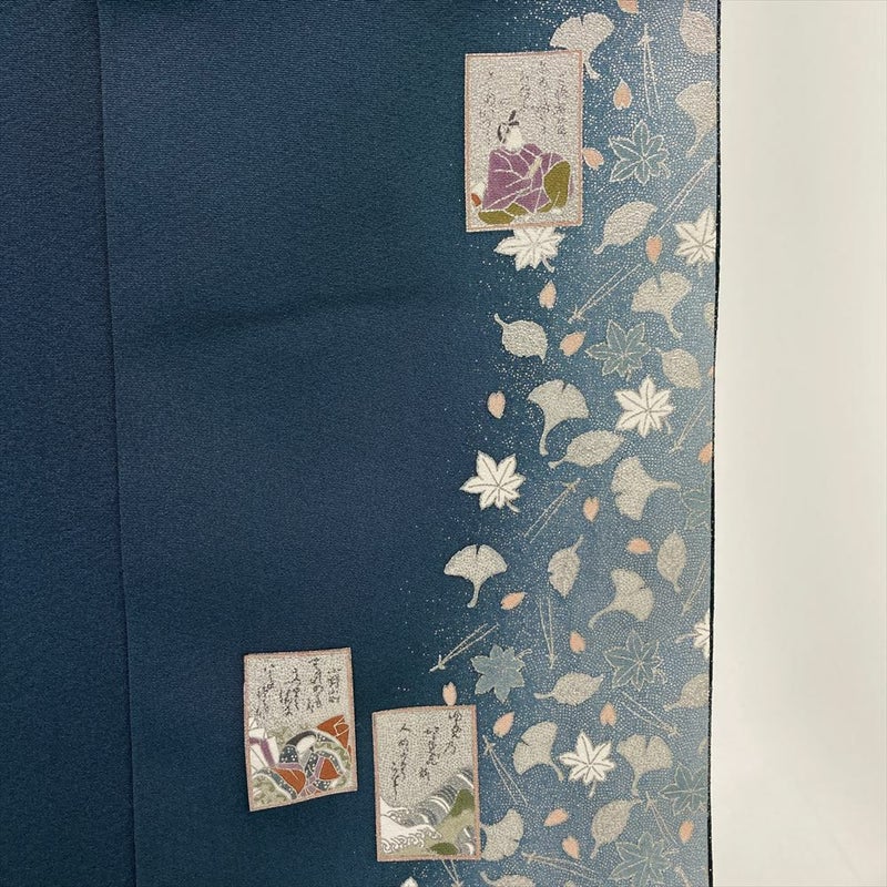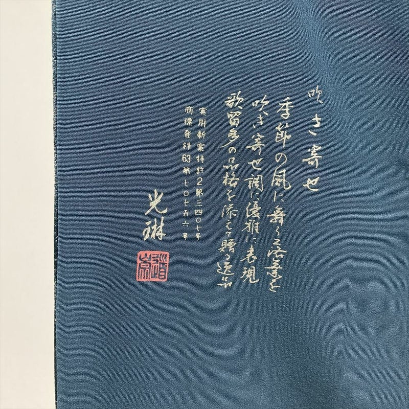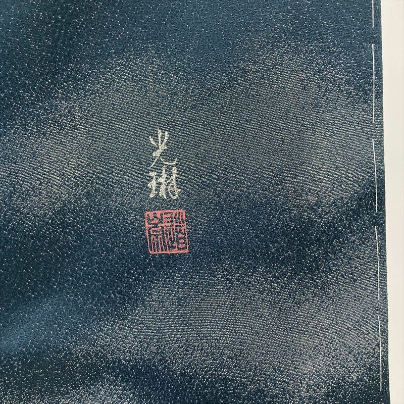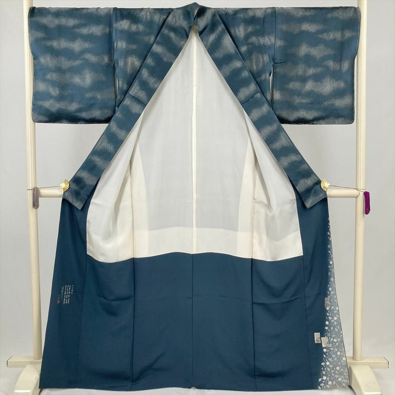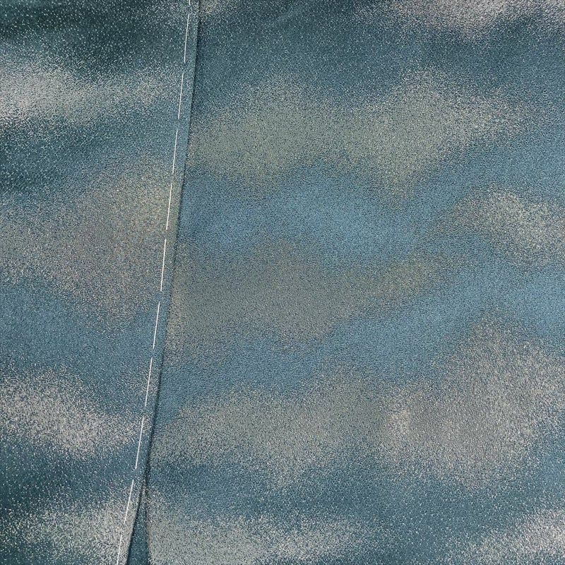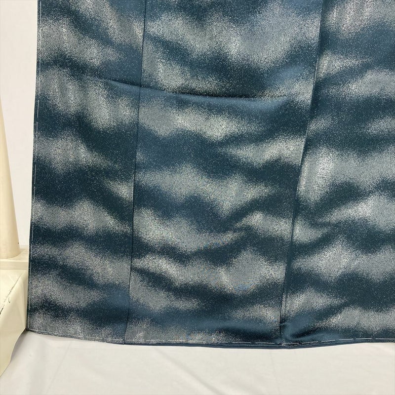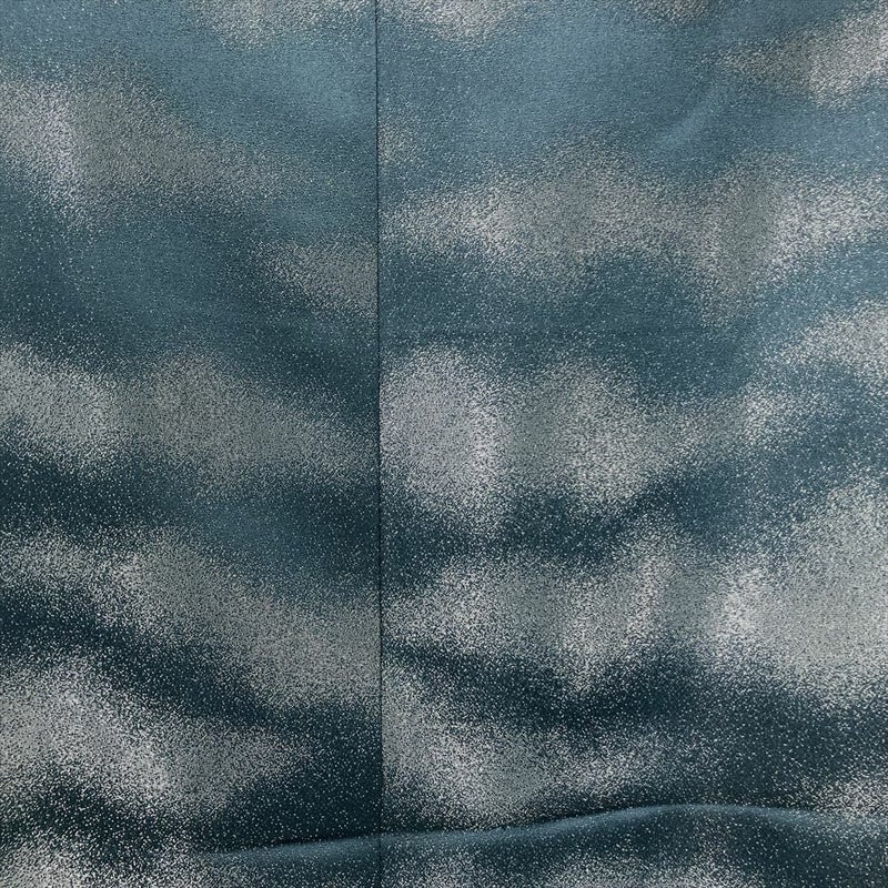 <div class=落ち着いた深い緑がかった青色に、銀通しの光沢が優雅にきらめく色無地です。
