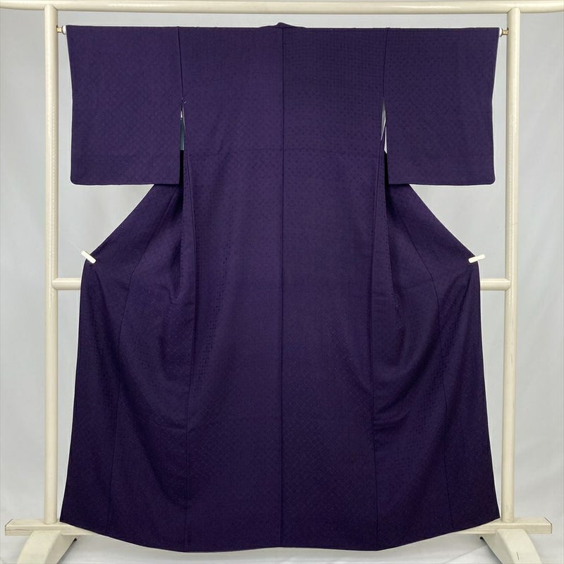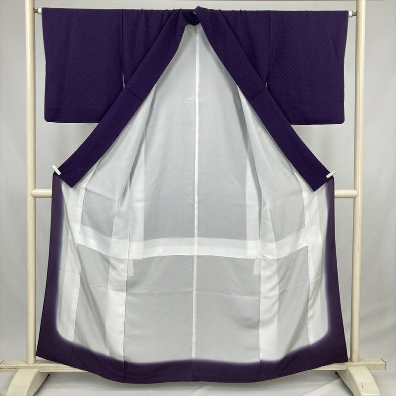 (中古) 色無地 紫 カジュアル 地紋織り 袷 絹 【身丈】155.5cm【裄丈】66cm