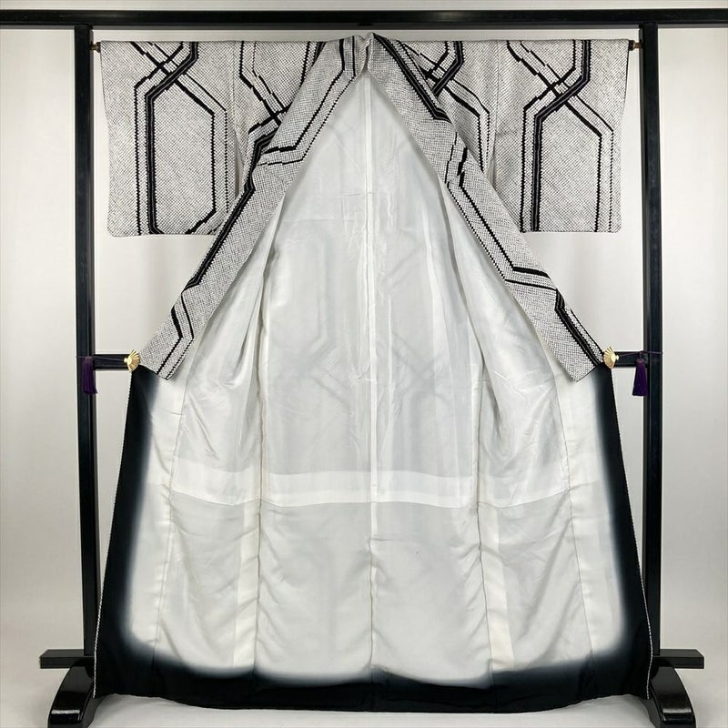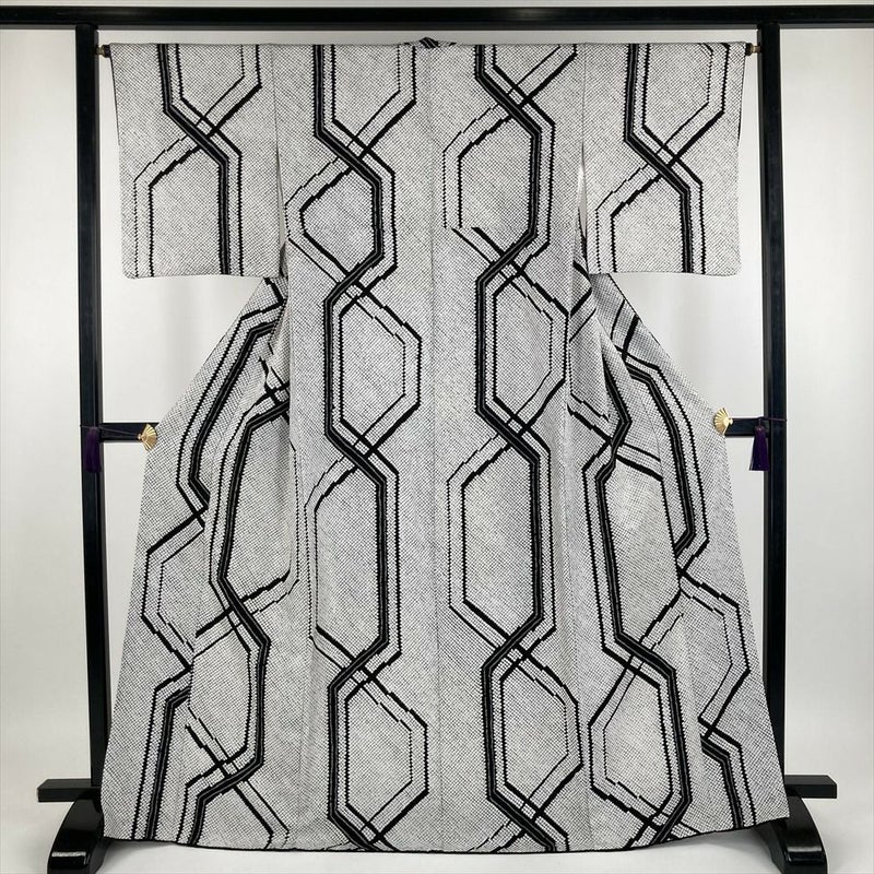 (中古) 小紋 白色 セミフォーマル カジュアル 染め 絞り 幾何学模様 袷【身丈】165cm【裄丈】64cm