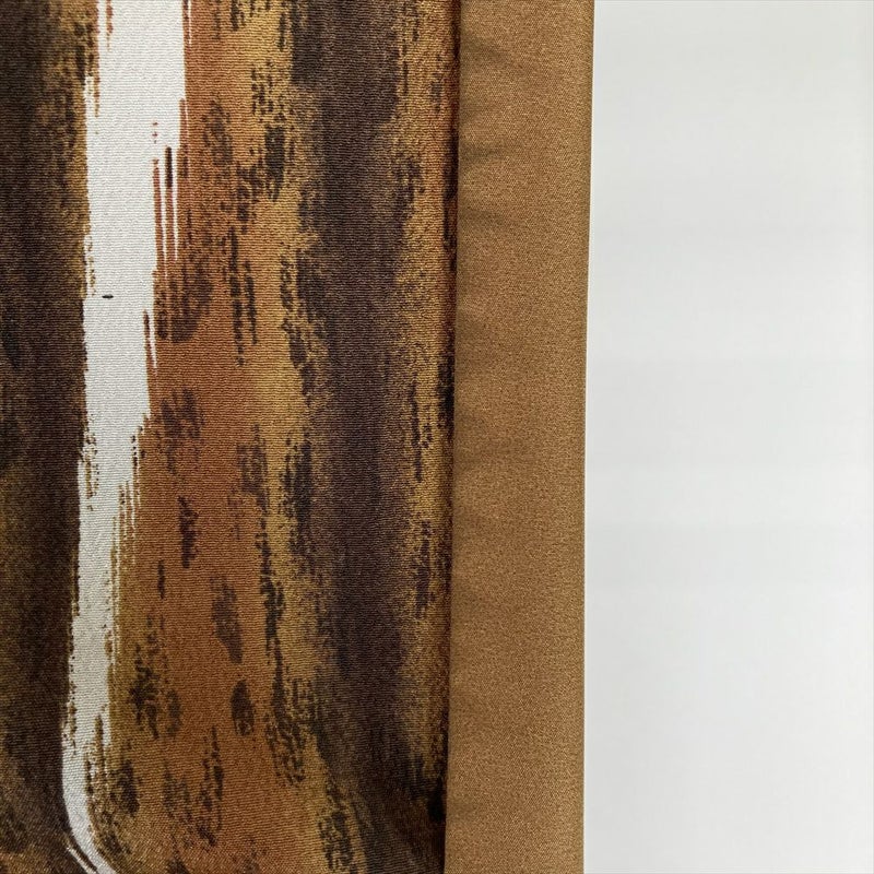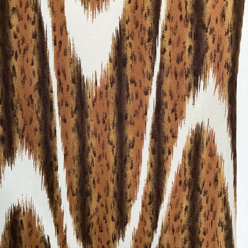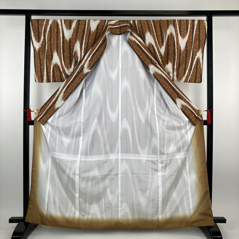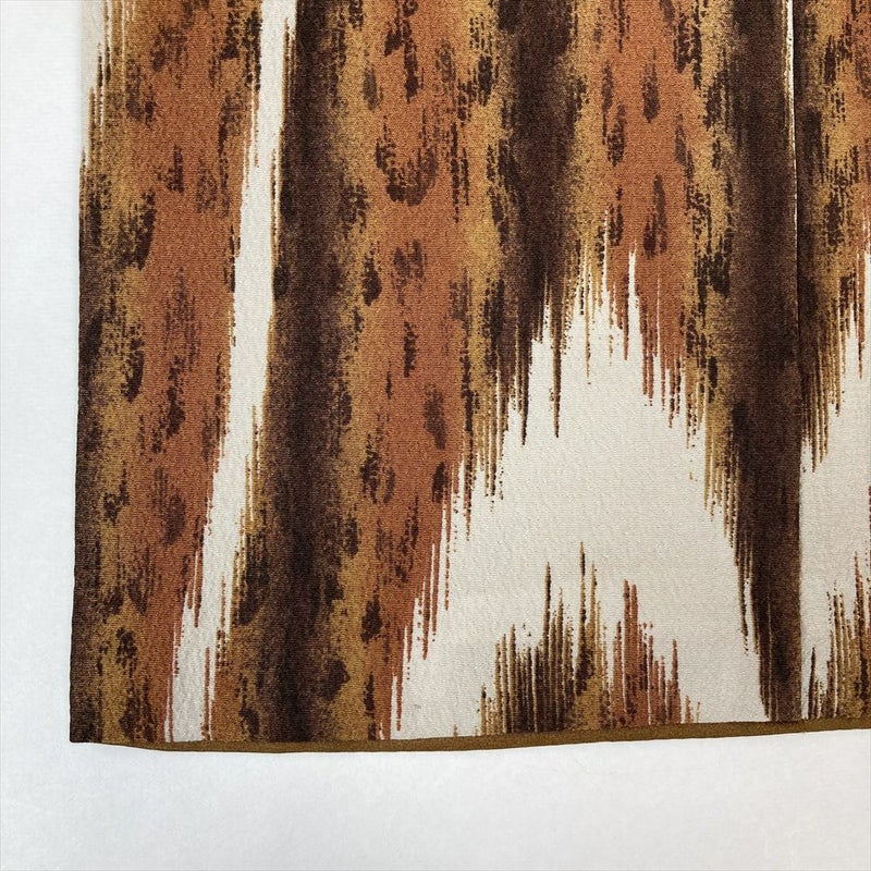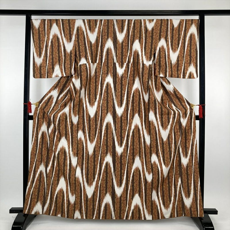 (中古)小紋 茶 ポリエステル ちりめん調 イカット 袷 M【身丈】161.5cm 【裄丈】69.5cm