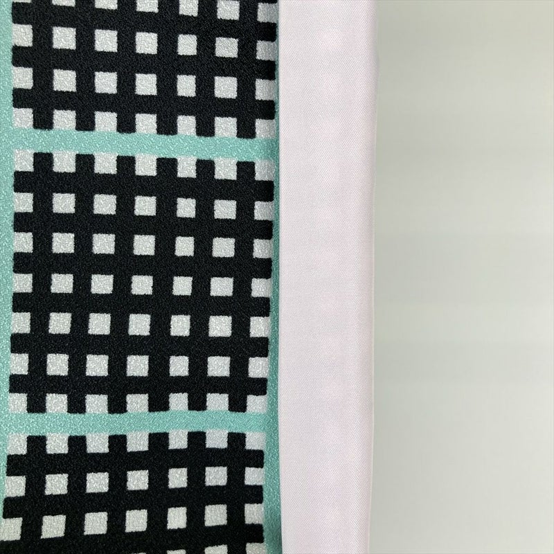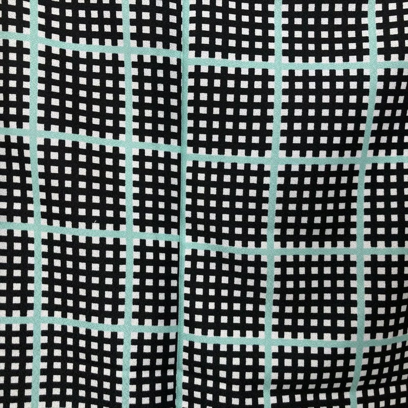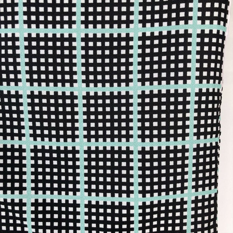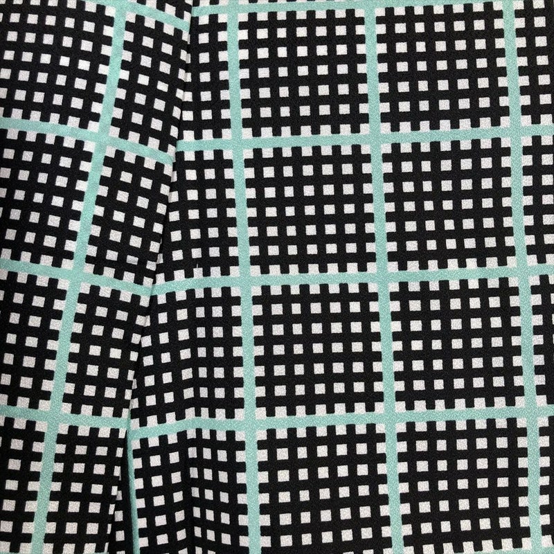 (中古)小紋 黒 ポリエステル 変わり格子 袷 M【身丈】162cm 【裄丈】68cm
